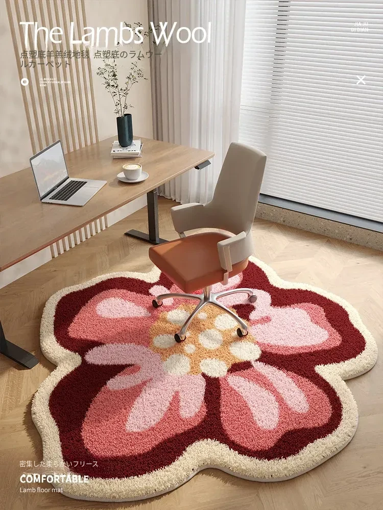 ユニークな形の転倒防止マット!かわいい花柄のクリエイティブカーペット、子供部屋や書斎にぴったり。椅子の下やデスクの足元をしっかりサポート!滑り止め機能で安心して使えます。