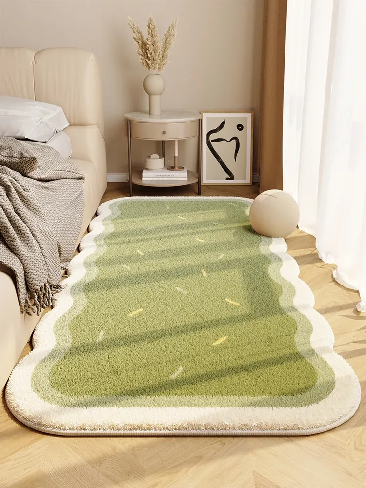 クリーム風主寝室用ベッドサイドラグ 不規則な形のフェイクカシミアマット 洗濯機で洗える リビングソファやテーブルにもぴったり!快適でおしゃれな空間を演出します。