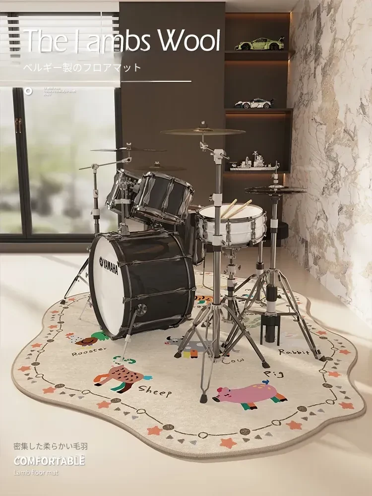 カートゥーンデザインの異形ドラム用カーペット - 防音・振動吸収マット!ピアノや麻雀卓にも最適な家庭用防震吸音マット。音質を守り、スタイリッシュな空間を演出します!