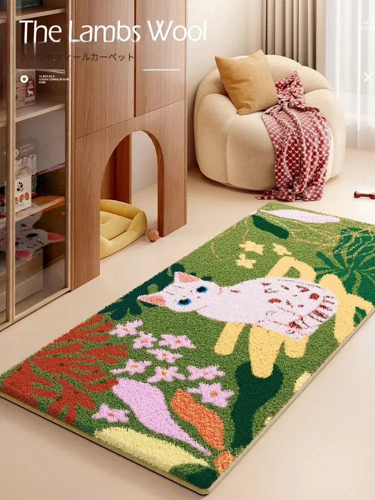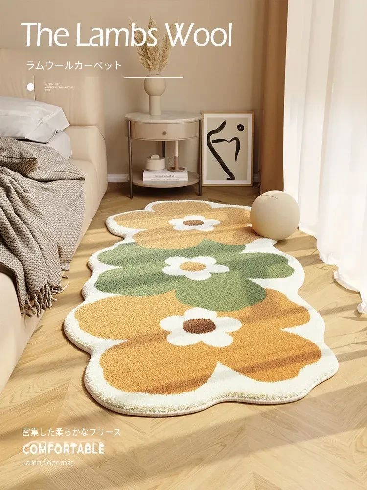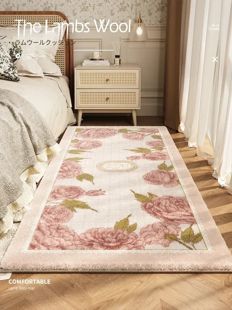 2026年新作!高級感溢れるフロッキングラグ - 寝室やリビングにぴったり!厚手で冬に最適、洗濯不要の毛足の長いマットで、快適な空間を演出します。おしゃれで暖かいベッドサイドマット!