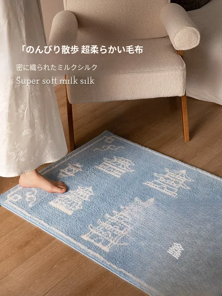 新中式スタイルの牛乳シルクラグ - リビングルームや衣装部屋にぴったりな軽奢感!ソファやコーヒーテーブルの下に最適、厚手で寝室のベッドサイドにぴったりなロングデザイン。心地よい肌触りで、インテリアをグレードアップ!