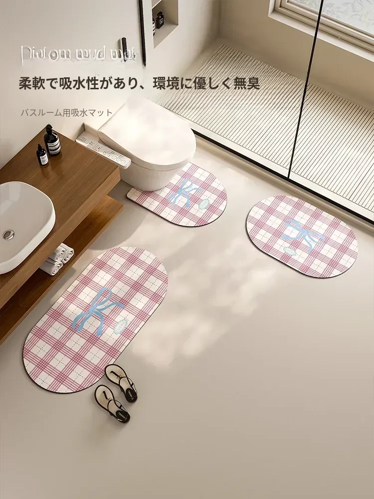 バスルーム用U型トイレマット吸水性抜群!滑り止め付きのトイレ用フロアマット3点セット、シリカゲル素材で家庭用にも最適!清潔で快適なトイレ空間を演出します。