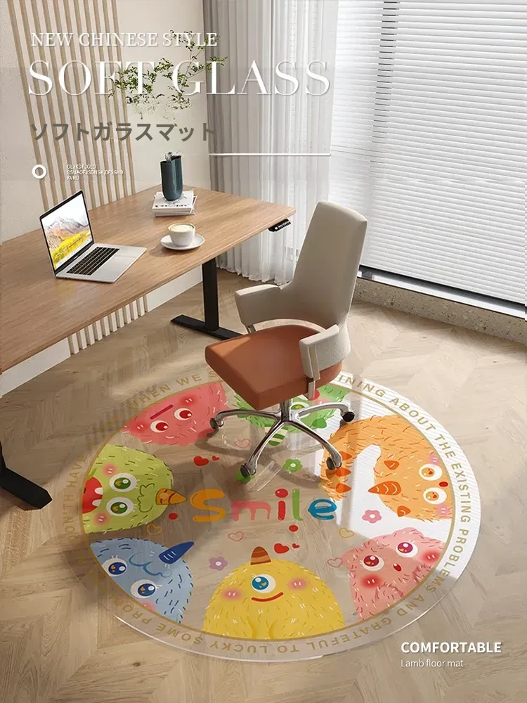 子供用学習チェア用透明PVCラウンドフロア保護マット - デスクやコンピューターチェアに最適!滑り止め機能付きで安全安心、快適な学習環境を提供します。