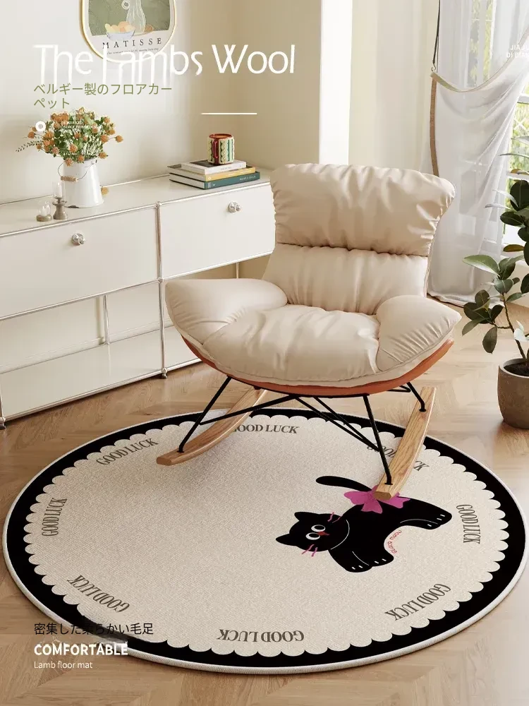 丸型ブラックパウキャットラグ - 寝室・リビングにぴったり!リラックスできる空間を演出し、揺り椅子やソファ、マッサージチェアの足元に最適なマットです。心地よい触感で、癒しのひとときをお楽しみください!