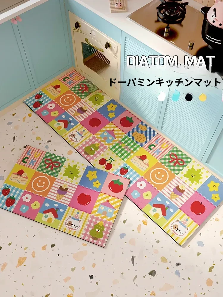 ドーパミンキッチンマット - 吸水・吸油・滑り止め機能付き!カラフルで可愛いデザインの人気の家用マット、手間いらずのクリーニング不要!おしゃれなキッチンにぴったり!