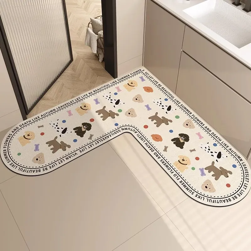 カワイイ犬のデザイン!キッチン用滑り止めマット - 防油&洗える長方形シリカゲル吸水フットマット。家での快適さをプラスして、毎日の料理を楽しく!