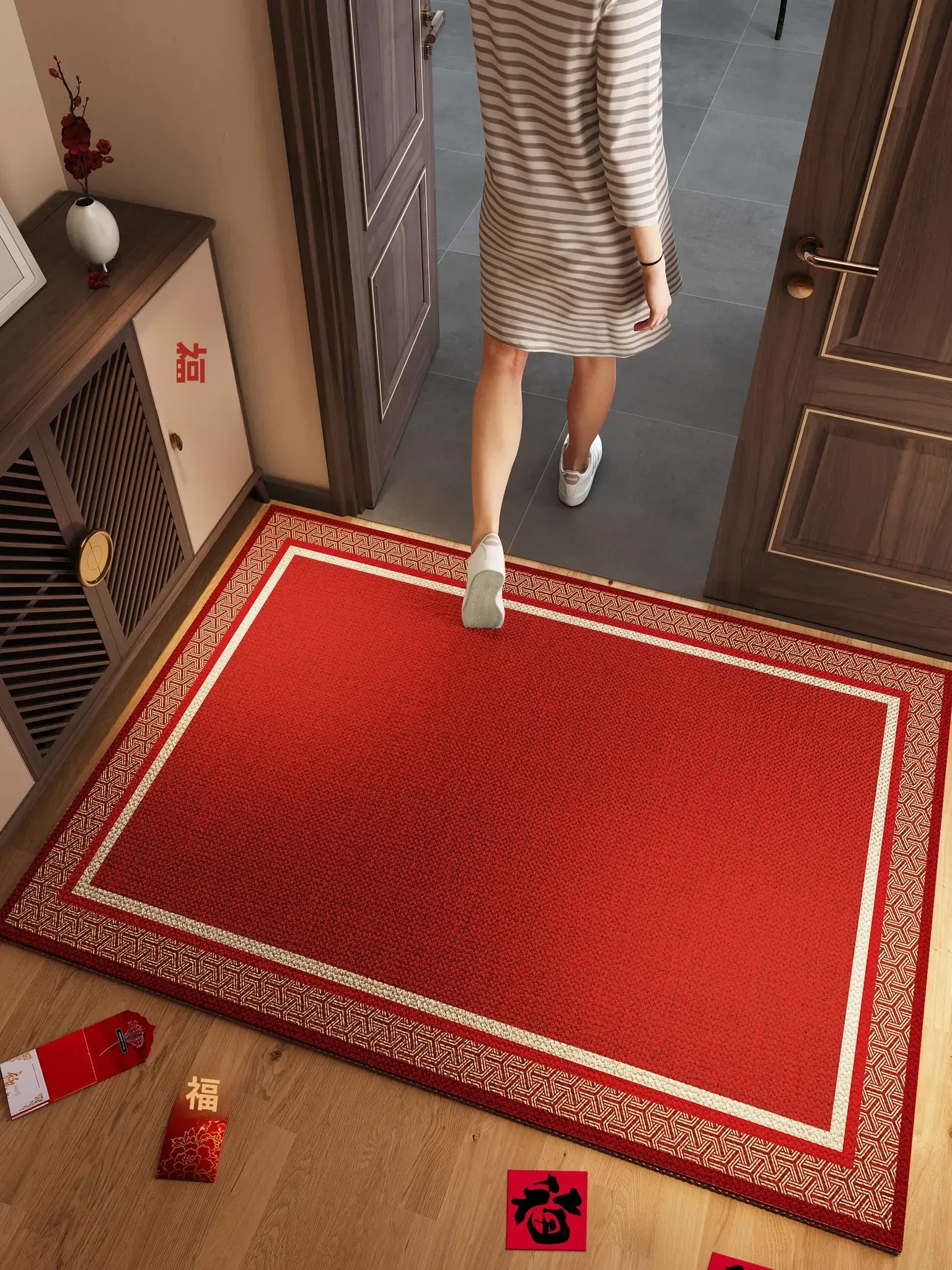 新年の玄関を彩る高級感あふれる赤いマット!滑り止め付きで汚れに強く、入るたびに喜びを感じるおしゃれなドアマット。新年の訪れを祝うために、あなたの家にぴったりのアイテムです!