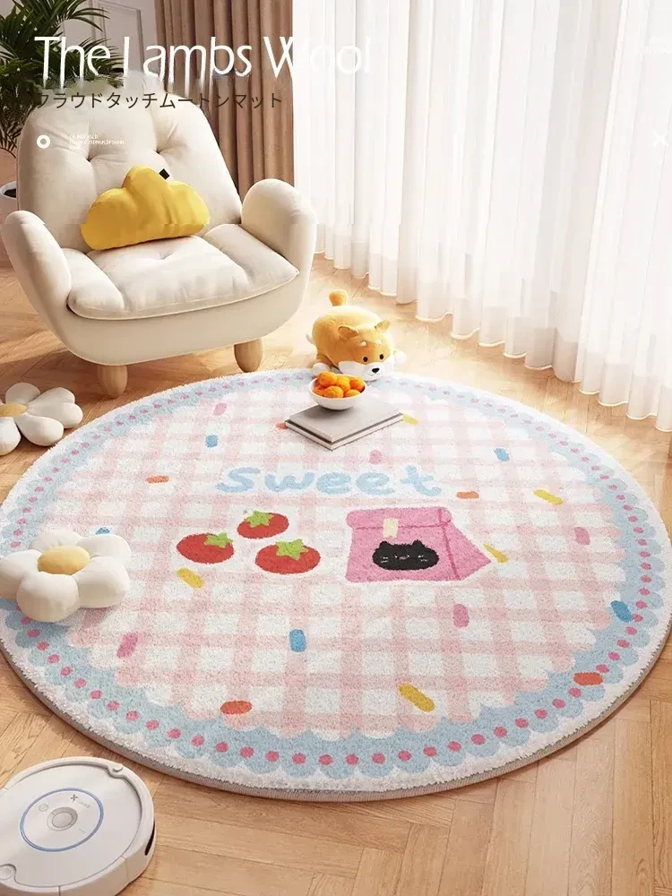 冬にぴったり!かわいい丸型カーペット、リビングやベランダにも最適。滑り止め付きで安心、ペットにも優しい厚手のマット。快適な空間を演出する、家庭用ラグです!