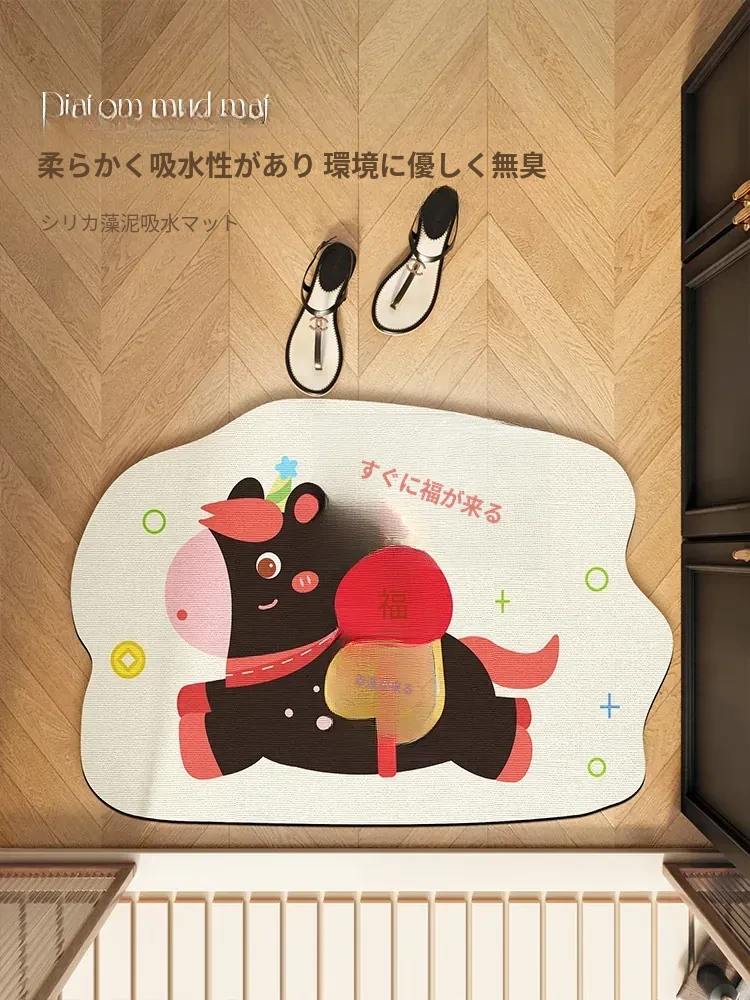 馬年デザインのバスルームマット!吸水性抜群の珪藻土製で、速乾&滑り止め機能付き。かわいいキャラクターでトイレを華やかに!玄関マットにも最適です。快適なバスルームを手に入れましょう!