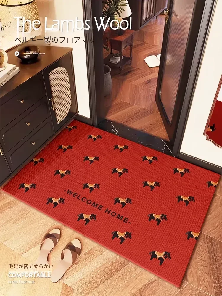 2026年新年迎福!馬年特製の豪華赤色玄関マット、厚手で耐摩耗性抜群!大切なお家の入り口を華やかに彩り、快適な一歩を提供します。