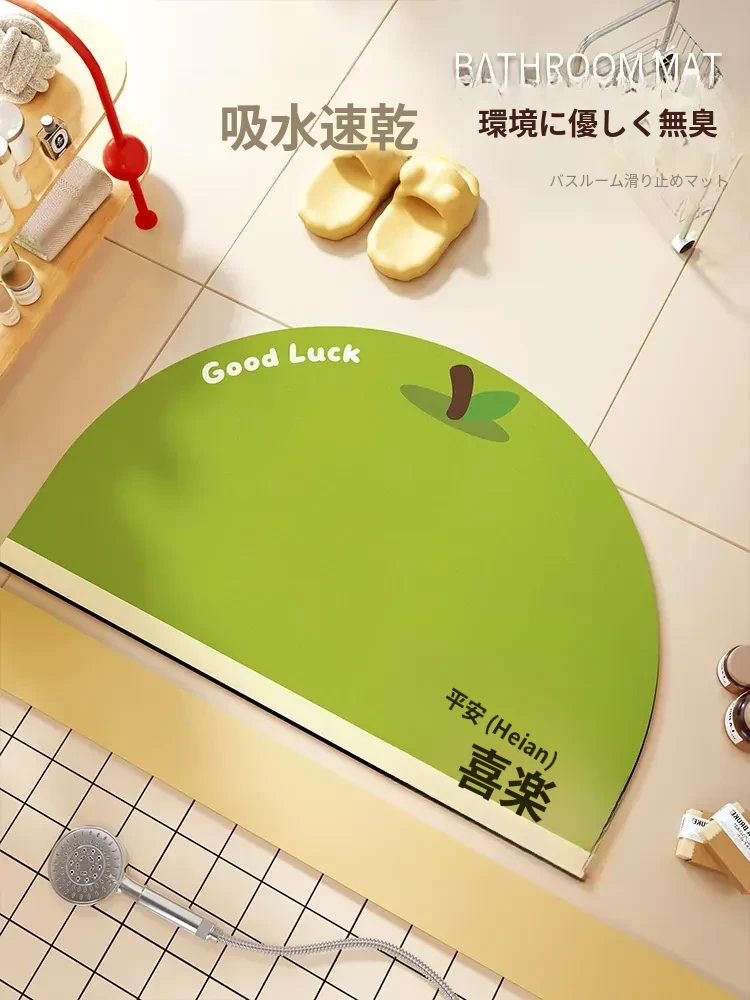 グリーンアップルバスルームマット - 吸水速乾、滑り止め機能付きのデザイン!お手洗いやシャワールームに最適なシリカゲル製マットで、快適な足元を実現。おしゃれなトイレの入り口にぴったり!