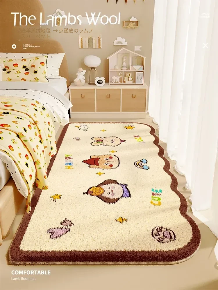 クリーミー風ベッドサイドラグ - 可愛い少女のための子供部屋にぴったり!おしゃれな異形デザイン、ふかふかの厚手マット、洗濯機で洗えてお手入れ簡単。ベッドの前に置いて、快適な空間を演出しましょう!