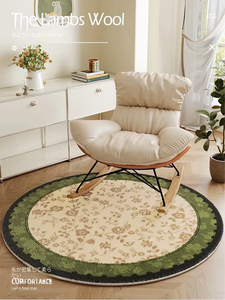 グリーンターンチェアマット リラックスできる揺れる椅子用 アメリカンレトロスタイルの書斎用フットマット 滑り止め付きフロアプロテクター おしゃれで快適な空間を演出!