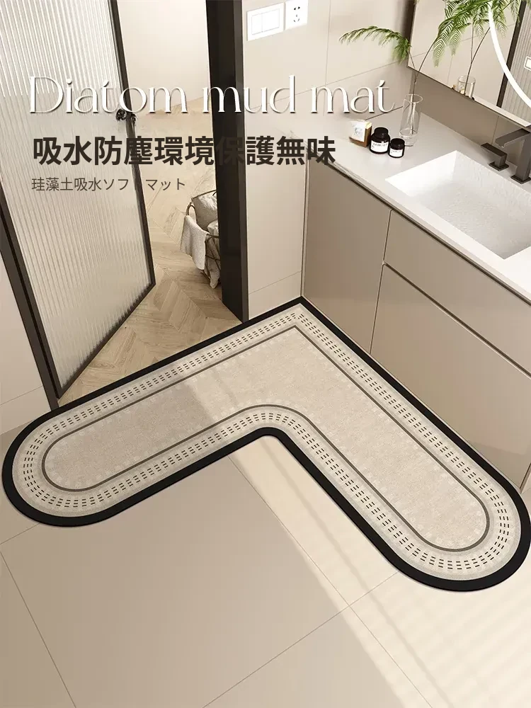 L型コーナーバスルームマット♡ 吸水速乾・滑り止め付きトイレ用マット!おしゃれで快適なトイレ空間を演出し、毎日の使用を楽しくします。あなたのバスルームにぴったりのアイテムです!