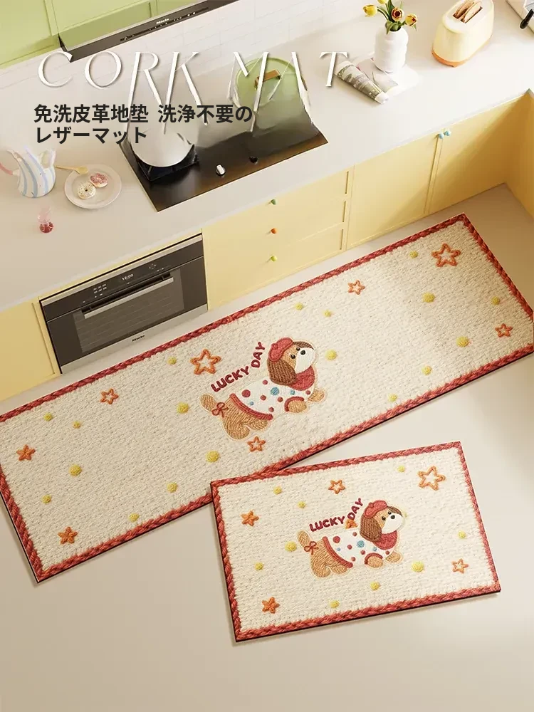 高品質キッチン用レザー調防水・防油PVCマット|洗浄不要・スタイリッシュな家庭用玄関滑り止めマット|おしゃれで機能的な足元の必需品!