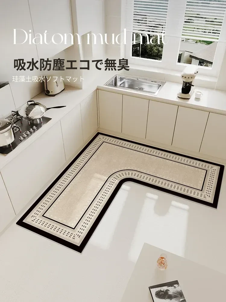 キッチン専用のL型シリカゲルマット!吸水性抜群で滑り止め効果もあり、家庭用に最適。汚れに強く、拭くだけでお手入れ簡単!油汚れも防ぎ、快適なキッチン空間を提供します。