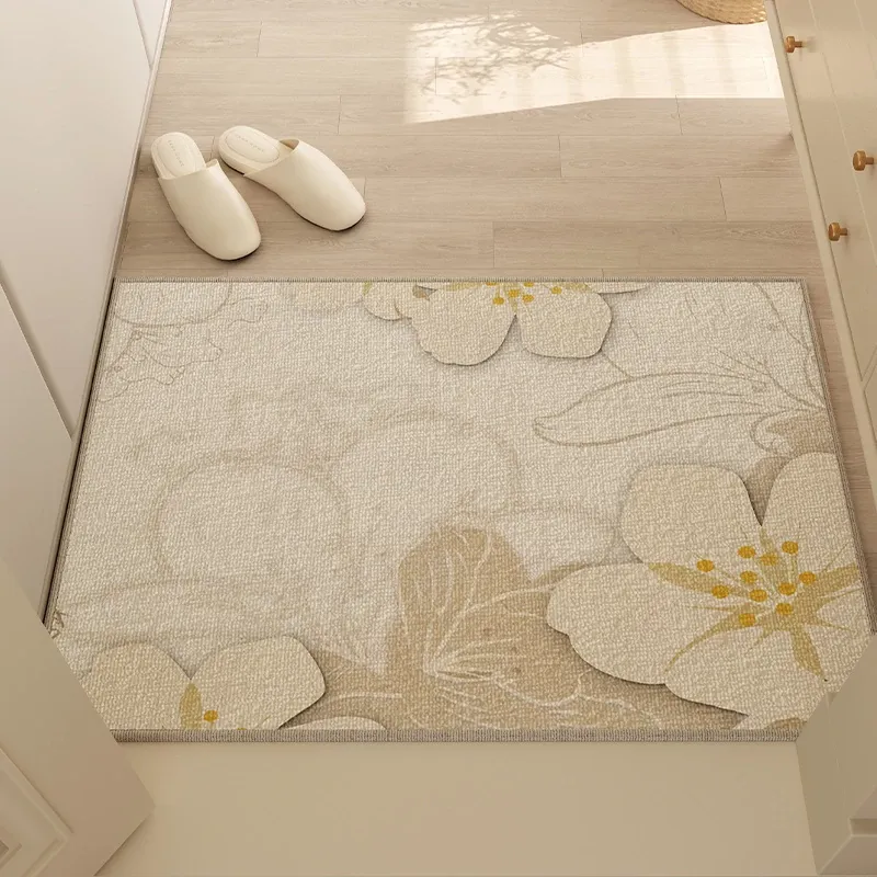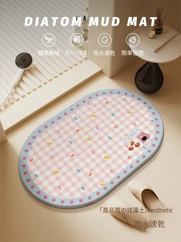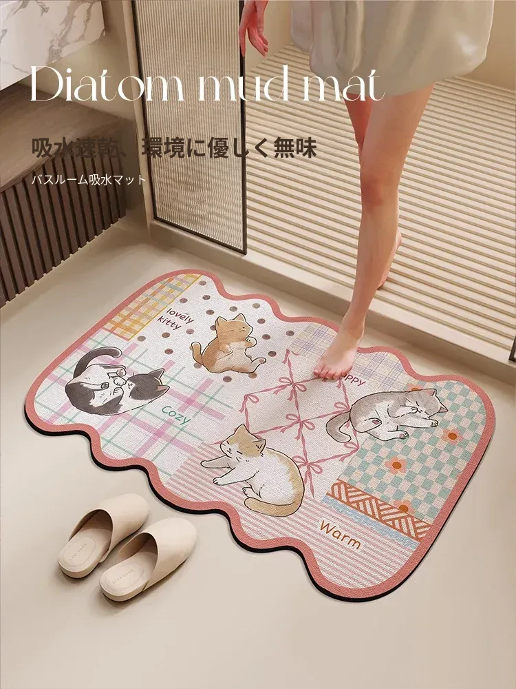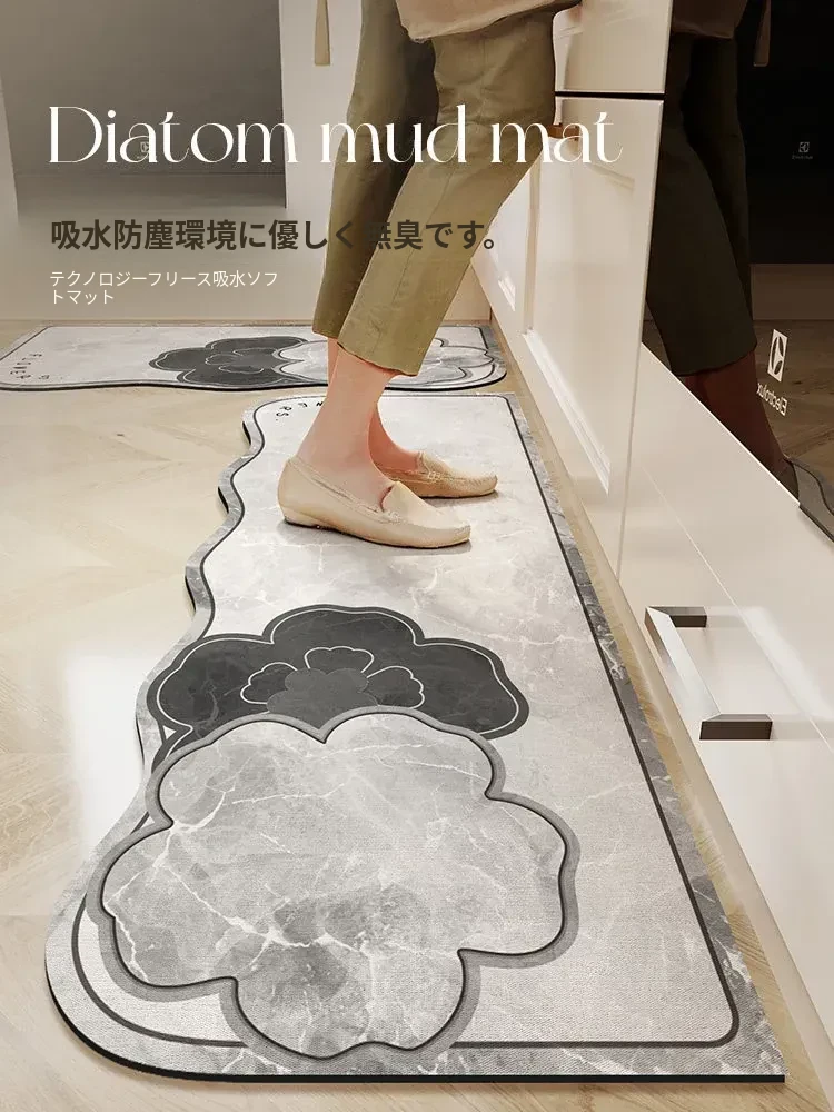 吸水性抜群!滑り止め付きシリカゲルマット - バスルームやトイレに最適な速乾マット、玄関マットとしてもお使いいただけます。清潔感溢れるデザインで、毎日の快適さをサポートします。