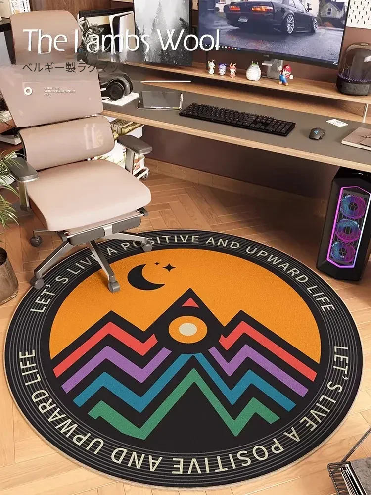 円形ゲーミングチェアマット|PCデスク用回転椅子用防音マット|ゲーミングルームに最適な滑り止め付き|男の子向け耐汚れフットパッド!快適さとスタイルを両立したおしゃれなアイテム!