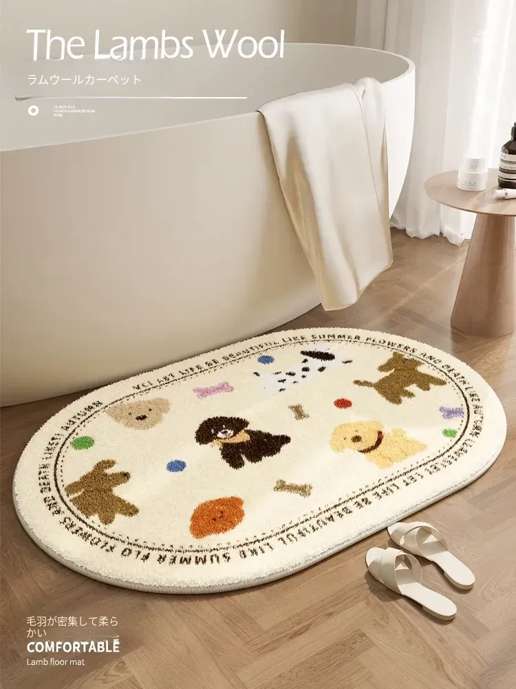 かわいいキャラクターのふわふわバスルームマット!吸水性抜群で滑り止め機能付き、冬のトイレにも最適なバスタブサイド用フットマット。快適さと安全性を両立した、あなたのバスルームを彩るアイテムです!