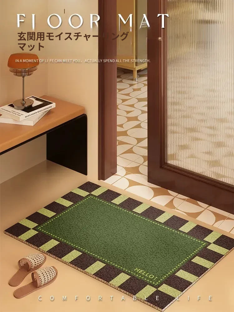 新中式デザインの玄関マット - 滑り止め機能付き、耐汚れ・おしゃれなインテリアに最適!玄関を彩るスタイリッシュな足元マットで、心地よい入室空間を演出します。