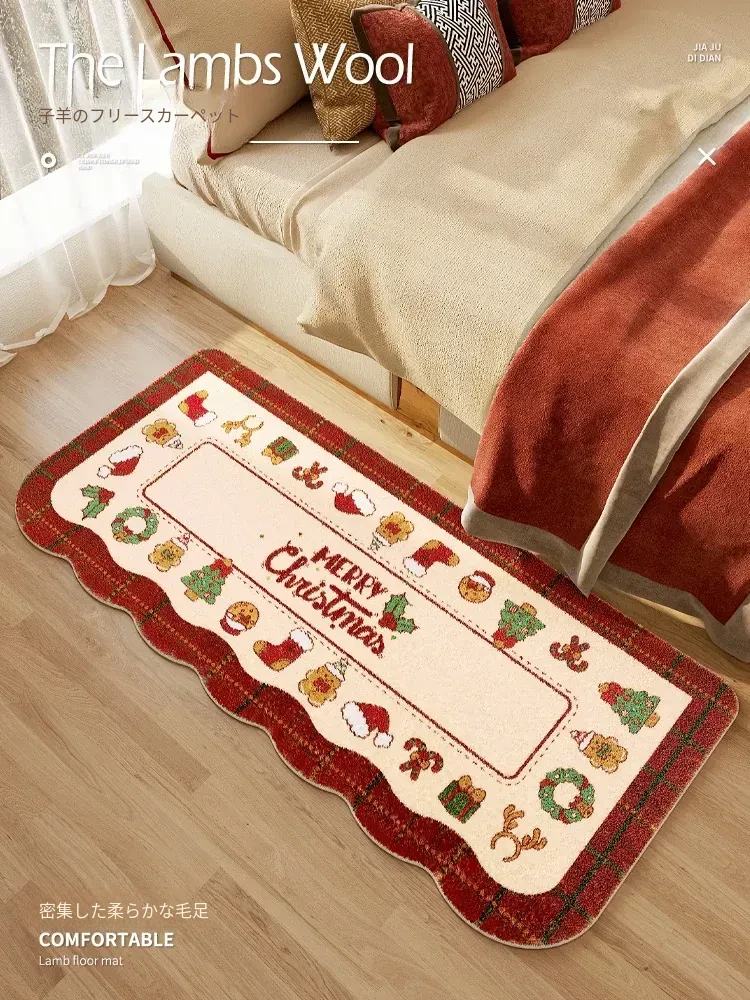 クリスマスカートゥーンベッドサイドマット 冬の寝室にぴったり!ふわふわ素材で暖かく、滑り止め付きで安心。お手入れ簡単な洗える室内装飾マットで、素敵な雰囲気を演出します。