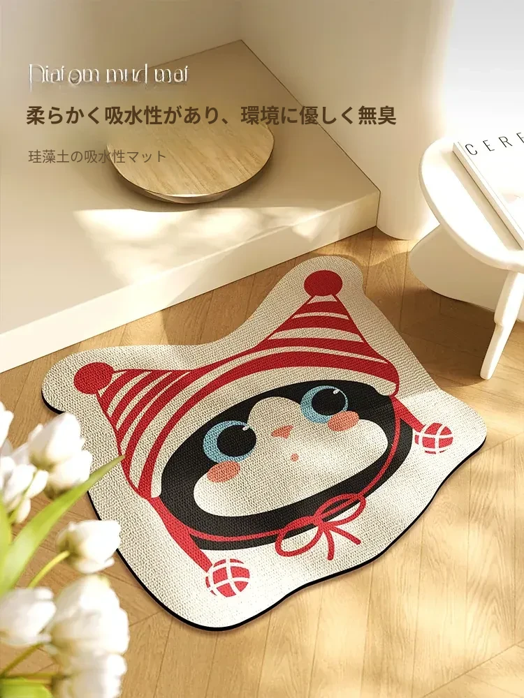 ユニークなデザインの猫型バスルームマット!おしゃれで吸水性抜群、滑り止め付きのカーペットです。可愛いキャラクターでトイレを楽しく演出し、家の玄関にもぴったり。シリカゲル素材で快適な足元を実現!