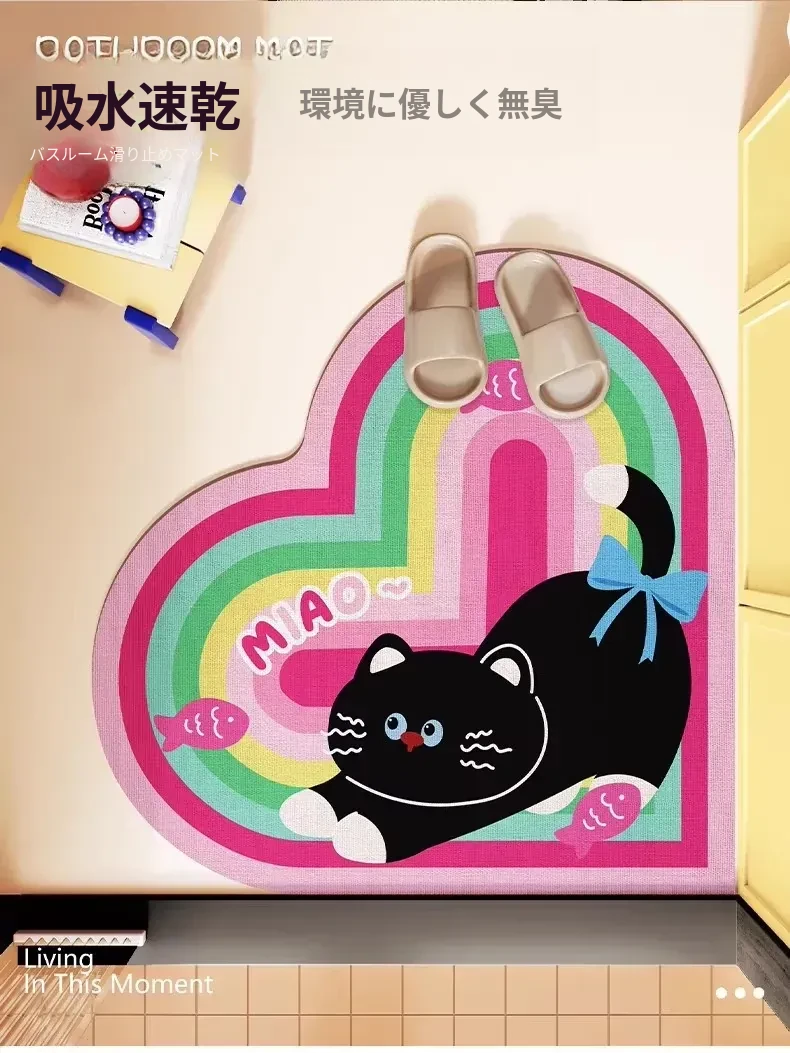 ハート型猫ちゃん吸水バスマット|速乾・洗浄不要・滑り止め・汚れに強い|トイレや玄関にぴったりな珪藻土マット!快適でおしゃれな空間を演出します!