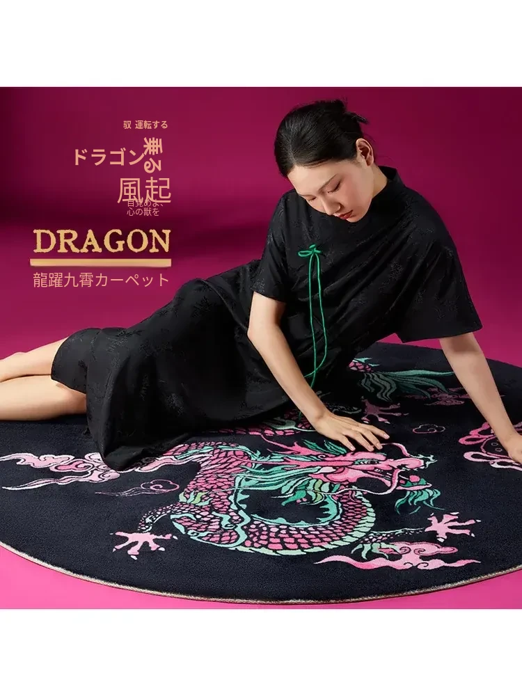 新中式スタイルの家庭用ラウンドカーペット - 鏡の前やリビング、寝室に最適!お手入れ簡単で、ベッドサイドでも使える黒のナイロン高級マット。心地よい空間作りに最適です!
