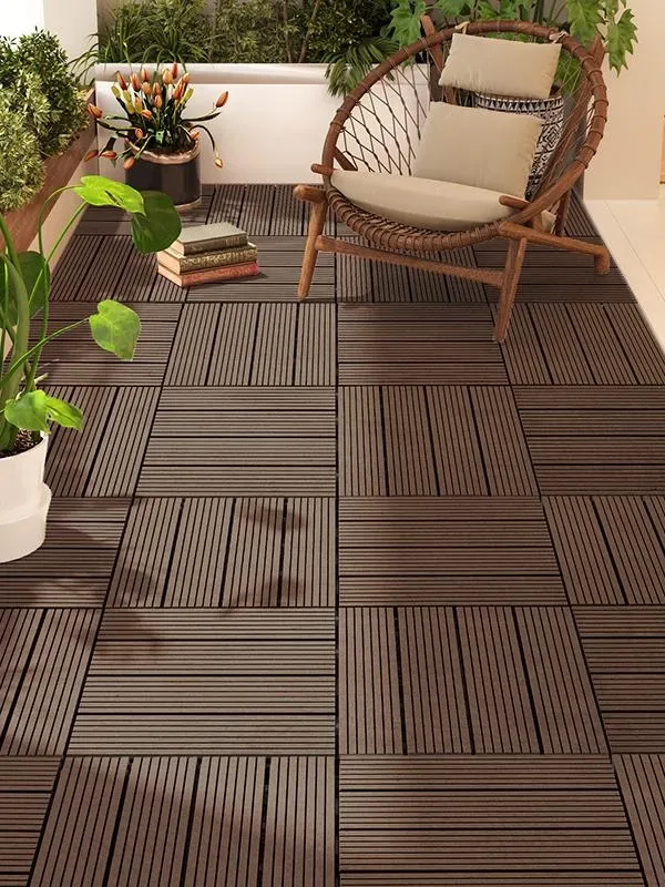 バルコニーのリラックススペースに最適!防水・紫外線カット・滑り止め機能付きのアウトドア用プラスチックウッドジョイントマット。おしゃれな庭や廊下を演出し、快適な空間を提供します!
