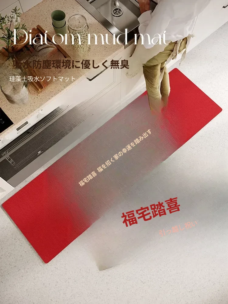 赤いキッチンマット - 引越し祝いに最適な吸水性シリカゲルマット!お手入れ簡単で滑り止め機能付き、喜びを演出するおしゃれなデザインのマットです。