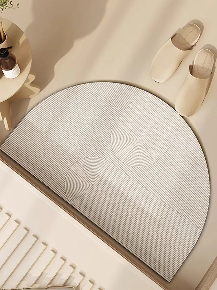 半円形シリカゲル吸水マット|トイレ・バスルーム用滑り止めフロアマット|おしゃれで実用的な洗面所カーペット!快適さと安全性を両立した、必須アイテムです!